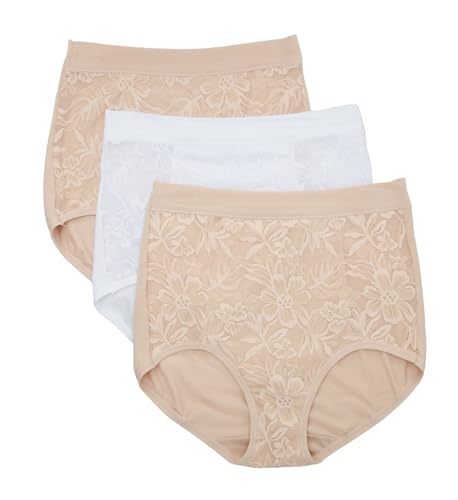 Bali Women's Breathe High-Rise Panty, Breathable Lace Modal Brief Underwear, 3-Pack, Almond/White/Almond