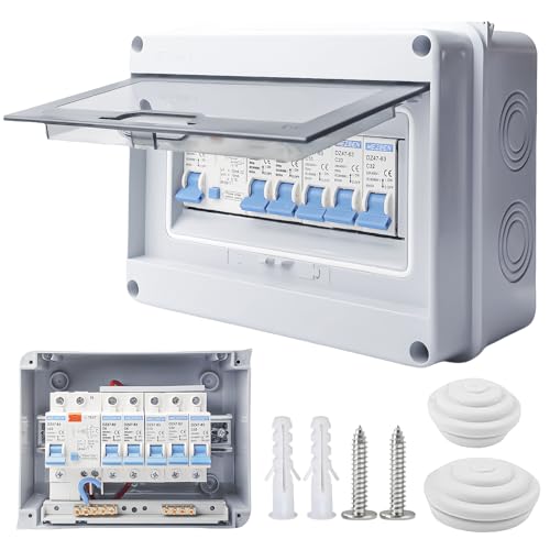 Vattentät fördelningsbox, ytmonterad fördelningsbox, distributionslåda utomhus vattentät, strömlåda utomhus, säkringsbox ytmonterad, ytmonterad med läckagebrytare 63A, luftbrytare 2A+10A+20A