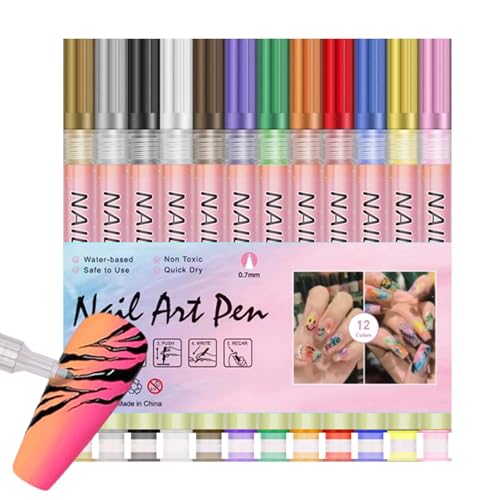 12 färger nagelkonstpennor set, nagelkonst pennor för gelpolska, nagel lackpenna, nagellackpennor, snabbt torkande nagelgelverktyg för kvinnliga flickor