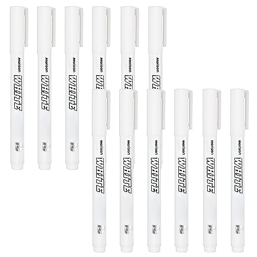 Lackpenna vit, 12 permanenta markörer vita däckpennor vita vattentät textilmarkör vit vit penna vattentät markörer akrylpennor vita akrylpennor för stenar vattentät för trä metall (Kina)