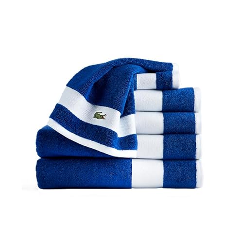 Lacoste Sport Stripe 6-Piece Luxury Cotton Towel Set – Made with 100% Soft Supima Cotton, Absorbent & Quick-Drying, Includes 2 Bath Towels, 2 Hand Towels, 2 Washcloths, Navy