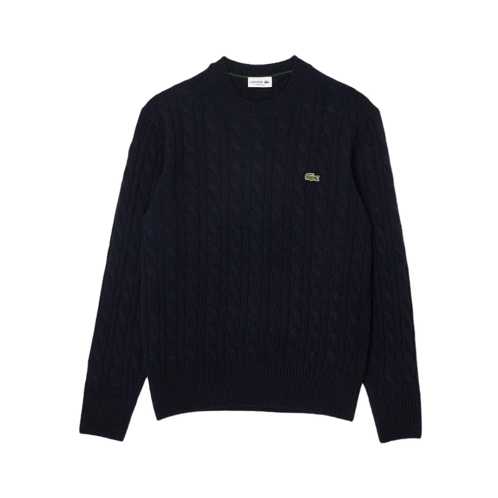 Lacoste, Stickade Tröjor , Herr, L, Cable Knit Wool Crew Neck Sweater
