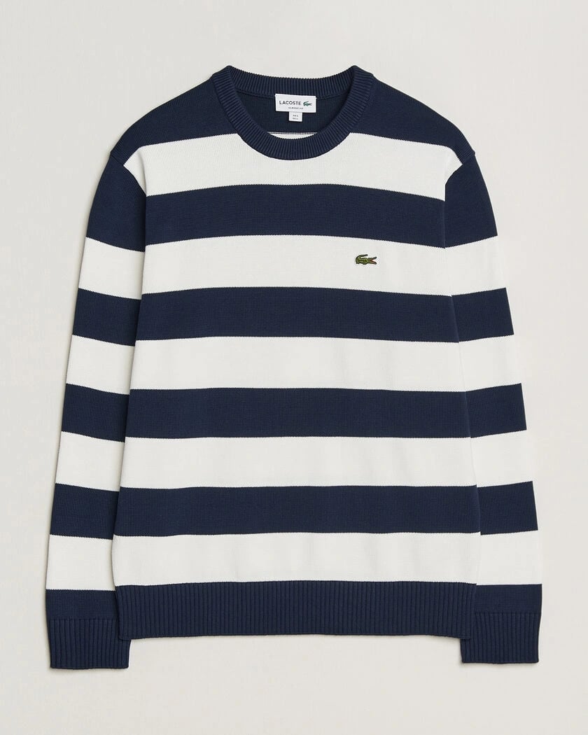Lacoste Cotton Knitted Striped Sweater Navy Blue/Flour