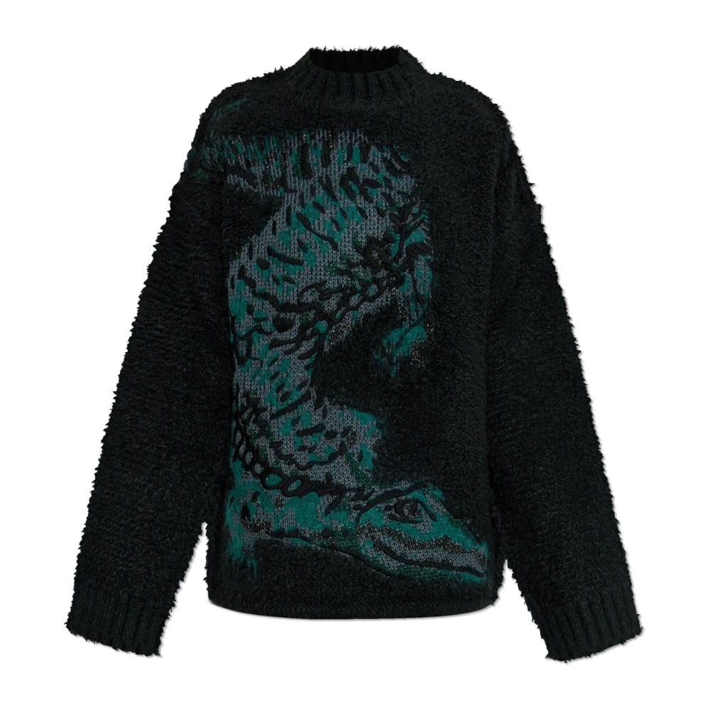Lacoste, Stickade Tröjor , Dam, L, Polyester, Runway Jacquard Crocodile Sweater