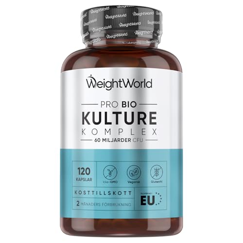 Pro Bio Cultures Complex - 60 miljarder CFU per portion - Med 20 bakteriestammar, ekologiskt inulin, FOS - 120 kapslar - 2 månaders förbrukning - Med Lactobacillus Reuteri & Bifidobacterium Infantis