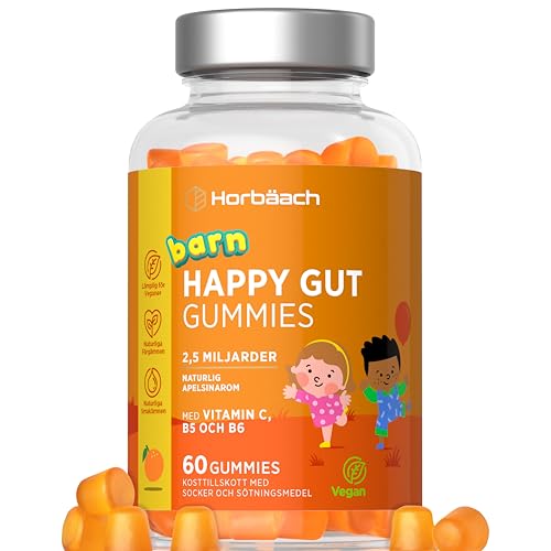 Biotiska Barn | 60 Gummies Vegan med Ananassmak | Biotiska för Tarmen och Tarmfloran | Bifidobacterium, Lactobacillus och vitamin C, B3, B5, B6 | Biotics Gummies Kids | av Horbaach