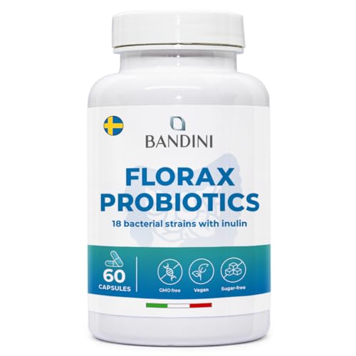 Bandini® FLORAX PROBIOTICS - 60 kapslar - Probiotiska mjölksyrajäsningar för tarmen - Matsmältningsenzymer från 14 bakteriestammar inklusive Lactobacillus, BifidoBacterium