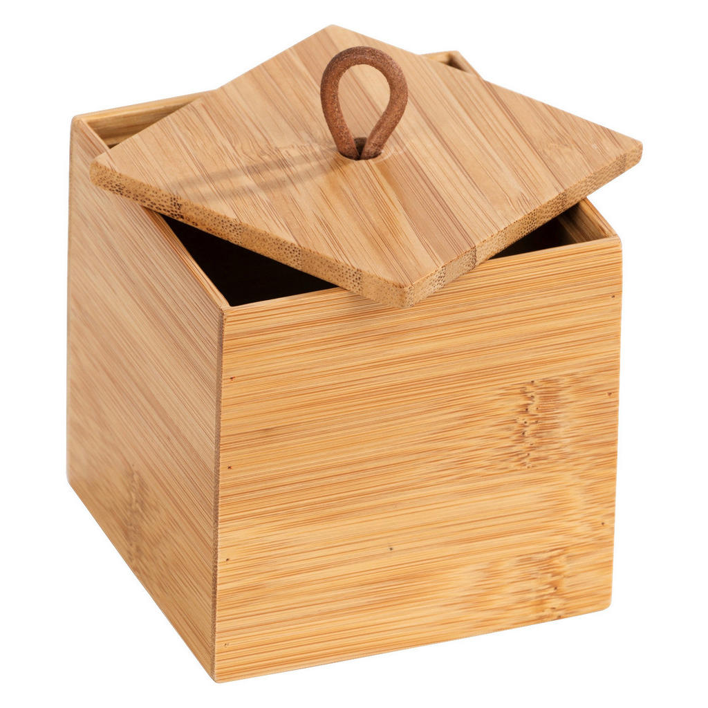 WENKO Badrumslåda Allegre, dekorativ låda med 3 praktiska fack i trendig boho-stil av högkvalitativ bambu och rotting, för förvaring av bad- eller sminkredskap, 12 x 8,5 x 9 cm, natur