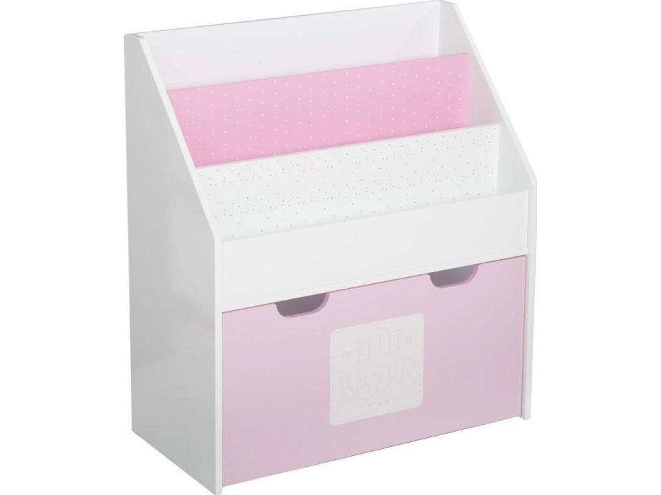 Atmosphera Barnbokhylla Med Låda Och Fack, 62,5 X 30 X 70 Cm, Vit Och Rosa