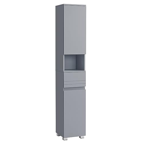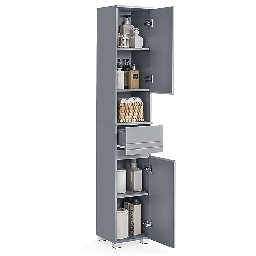 VASAGLE Badrumsskåp, förvaringsmöbler, med låda, fack, justerbara hyllor, 30 x 30 x 170 cm, mystisk grå BBC560P36