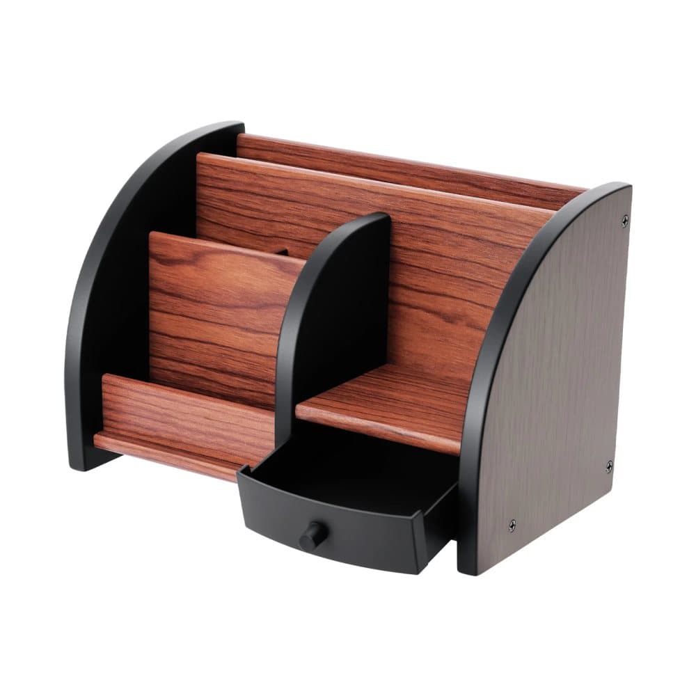 Pennställ i trä - Skrivbordsorganisatör - Med låda - Flera fack - För pennor & kontorsmaterial - Kontor Hem Skola