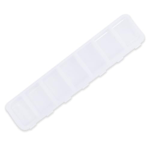 Craftelier - Låda med 7 fack för små delar (flikar, ögonlock...) | Varje fack har individuellt lock | Storlek: 23,3 x 5,2 x 2,8 cm | Färg: Tansparent