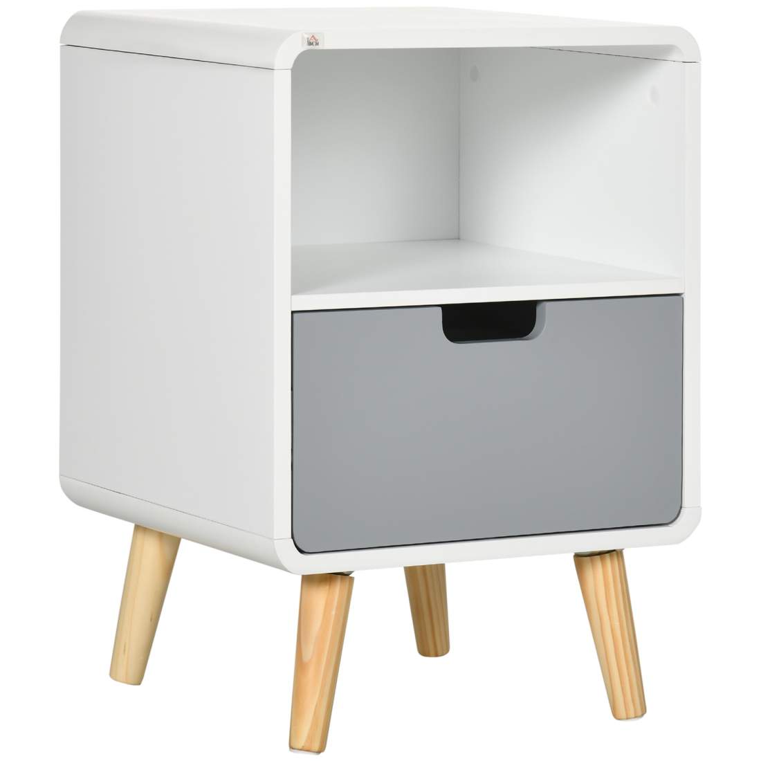 Vitt Sängbord med Låda och Fack 40x38x58 cm