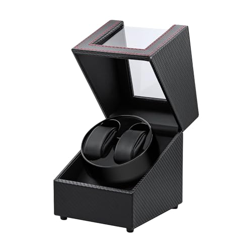 Mcbazel Dubbel automatisk klocka upprullningsbox, automatisk klocka display förvaring rotation armbandsur låda med 2 fack – svart/röd