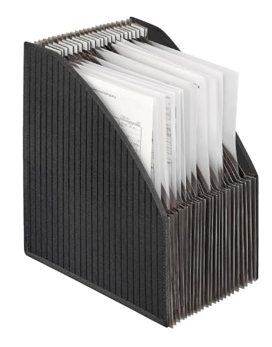 Veloflex 4446280 – Ståsamlare fläktlåda DIN A4, stark PP-film, med textilförstärkta kanter, låda med 23 fack, lämplig för A4-dokument, flexibel botten, svart, 1 styck