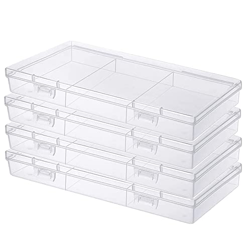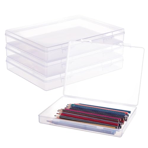 BENECREAT 22,5 x 16,5 x 3,3 cm 4-pack rektangulära genomskinliga plastförvaringsbehållare, stor låda, fodral med uppfällbart lock för små föremål, anteckningsbok, penna, pärlor och smyckesfynd