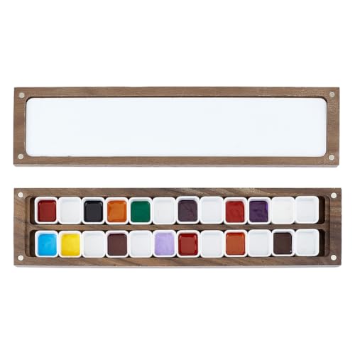 PH PandaHall träakvarellpalett, 24 rutnät tomma akvarellfärg bricka med lock valnöt resa måleri låda konstväska för målare studenter vuxna studio hem utomhus, kamel