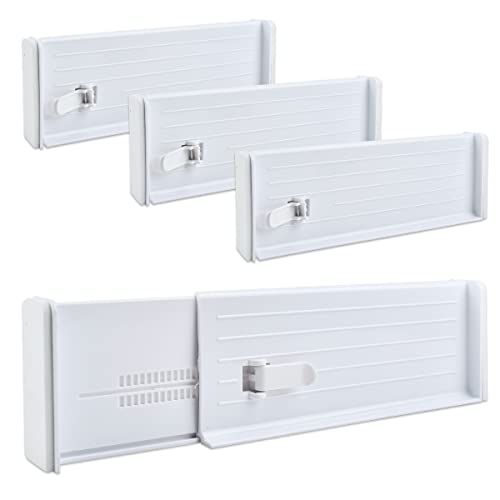 OTYMIOW 4 st justerbara plastlådseparatorer ABS expanderbara lådor arrangör lådavdelare 27 cm - 47 cm vit plast för lådor, kök, sovrum, kontor