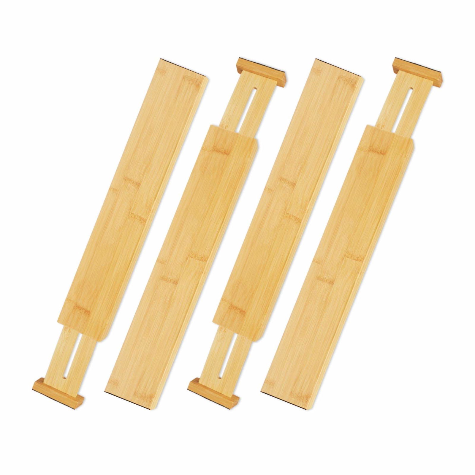 Ryqtop Lådavdelare i bambu, kökslådsorganisatör, justerbar lådavdelare för kläder, kök, byrå, sovrum, badrum och kontor, 4-pack (naturlig, 43–56 cm)