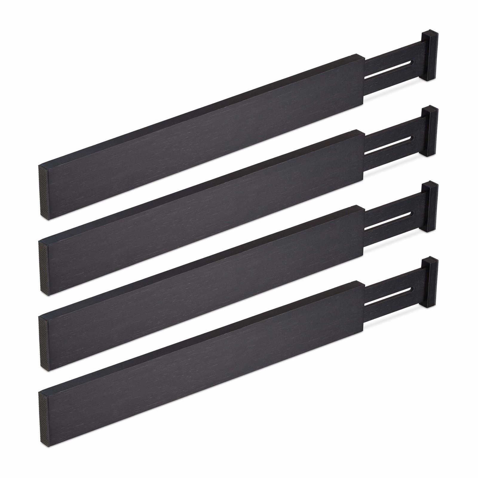 Ryqtop bambu lådavdelare organisatörer, kökslåda organisatör, justerbar låddelare för kläder, kök, byrå, sovrum, badrum och kontor, 4-pack (30-45 cm), svart