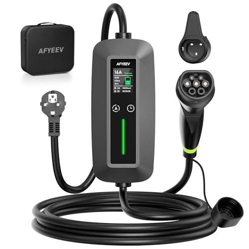 AFYEEV typ 2 laddningskabel Schuko 6 m 3,68 kW 6–16 A, elbil typ 2 Schuko, EV bärbar laddare för elbil