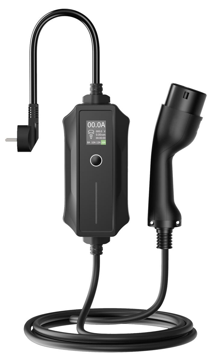 ZENCAR EVSE 10m laddare typ 2 Schuko 230V 3,6kW elbil omkopplingsbar laddningsbox 6A/8A/10A/12A/16A display, för EV GLE500e EQC E-Tron 3/S/X/Y ID.3 i3 ZOE Kona Leaf I-Pace 330e 530e 740e S90 V90 etc.
