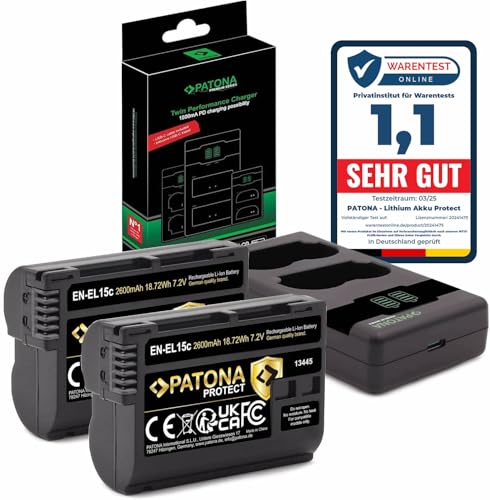 PATONA PROTECT EN-EL15c batterier (2x 2600mAh) NTC sensor och V1 skyddshölje - med 1500mA PD Performance USB-C laddare 161965 - kompatibel med Zf Z6III etc.