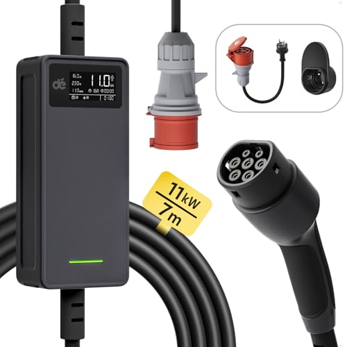 dé EV Laddare CEE Laddkabel Typ 2 11 kW [7m, 3-fas, 6-16A] Elbilsladdare och Mobil Laddningsstation/Wallbox för Model Y/3, ID.3/4/5, MG4, EX30, e-up, e-tron, Zoe och andra elbilar