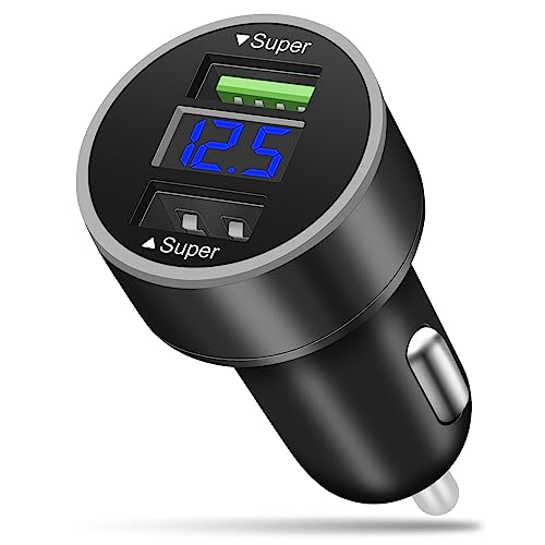 AXFEE USB-billaddare, 2 portar 66 W USB-laddare för cigarettändare, mini snabbladdningsuttag med LED voltmeter, kompatibel med smartphones, iPhone, iPad, Samsung, Android