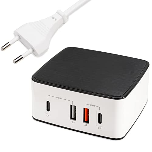 FeinTech NLG00165 USB C-laddare flera fack 4-port 65 W (45 W + 20 W) USB-strömförsörjning med 2 x USB-C PD och 2 x USB-A QC 3.0 – USB-laddningsstation för bärbar dator MacBook surfplatta iPad