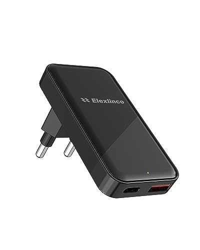 20W 2-Port USB Laddare, Elexlinco Strömförsörjning PD 3.0 USB C Strömadapter Laddningskontakt Kompatibel för iPhone, iPad, Samsung Galaxy, Nexus, HTC, Motorola, LG och Många Fler (Svart)