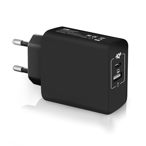 deleyCON Laddare USB C (2 Portar - 35 W Snabbladdning) USB-C Strömadapter för iPhone 17 16/15/14/13/12/11 iPad Galaxy S25/S24/S23 Pixel PD 3.0 Laddare för Mobiltelefoner - Svart