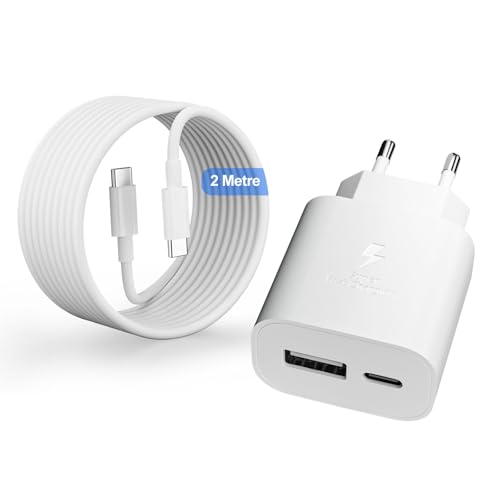2-Pack 25W USB C Laddare Snabbladdare för Samsung Galaxy S25 S24 S23 S22 S21 S20 Plus/Ultra S21FE S10 A55 A54 A53 A34 A15 M14 M13 iPad Pro Snabbladdare, 1,5m Typ C Laddkabel Strömförsörjningsenhet