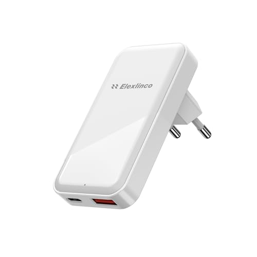 Elexlinco USB-C-laddare, GAN 35 W, 2-portars kompakt snabbladdare med PD 35 W port och QC 3.0 18W USB A-port kompatibel med iPhone 14/13, Galaxy S23/S22, iPad, AirPods osv vit)