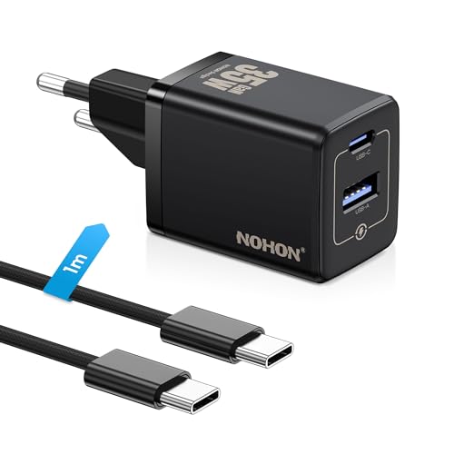 NOHON USB C-snabbladdare: 35 W GAN USB C-laddare, snabbladdare med 1 m 60 W Typ-C-kabel, 2-port Typ C-kontakt kompatibel med iPhone 15/15 Pro/15 Pro Max/14/13/12, Samsung Galaxy, iPad