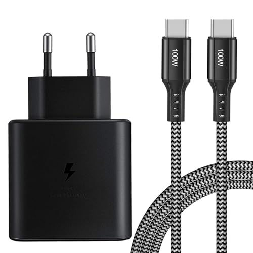 KAIMENGLONG 45 W USB C Snabbladdare Supersnabb Strömförsörjning USB C-laddare med 2M USB C Nylonkabel för Samsung Galaxy S24 S23 S22 S21 S20 Ultra, Note 20/10+, A54, A55 5G, A72, Tab S9 S8 S7
