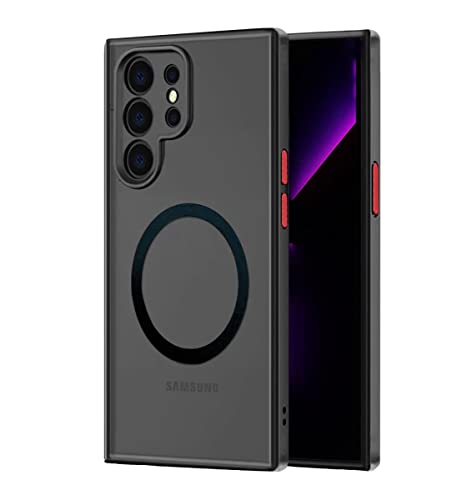 Doowear Galaxy S22 Ultra fodral magnetisk [stöder Magsafe laddare] trådlös anti-repor stötsäker matt klar full kameraskydd smal tunn telefonskydd fodral för Samsung Galaxy S22 Ultra-svart