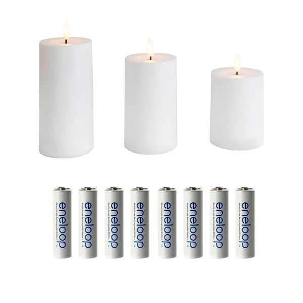LED blockljus Airam Saraby, 3 st, Blockljus + 8 st laddbara AA-batterier
