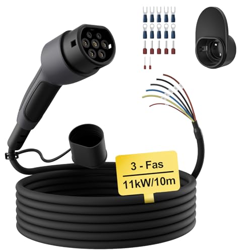 dé Typ 2 Laddningskabel Öppen Ände 11kW [3-Fas|10m|16A] för Laddbox/Laddstation Ersättningskabel