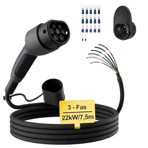 dé Typ 2 Laddningskabel Öppen Ände 11kW [3-Fas|7,5m|16A] för Laddbox/Laddstation Ersättningskabel