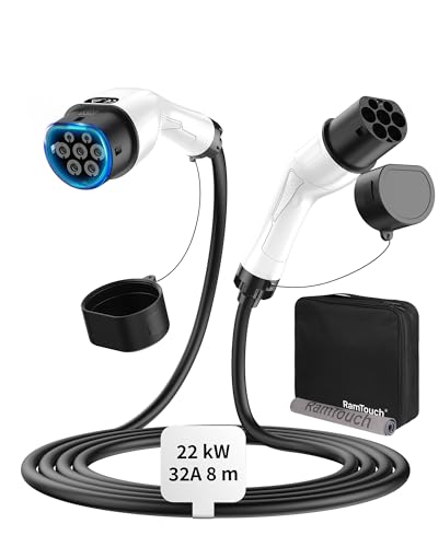 RamTouch Typ 2 Laddkabel (22 kW, 8 m, 32A, 3-fas, Mode 3) - Typ 2 till Typ 2 Kabel för Wallbox/Laddstation, kompatibel med Elbilar Laddhybrider för Model Y/3/X/S, Enyaq, ID.3, ID.4, ID.5