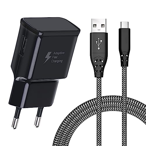 USB Laddare Med 1,5m USB C Laddkabel för Samsung Galaxy A15 A14 A13 A04s A05s A71 A55 A54 A53 A42 A35 A34 A33 A25 A23 M53 M34 M13 S8 S9 S10 S20 Plus S10e, Snabbladdare Typ C Snabbladdningskabel