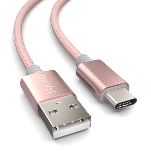 2 m USB C-kabel av nylon, USB 3.1 (USB 3.0), rosa/champagne, USB typ A till USB typ C-laddkabel, datakabel, guldkontakt