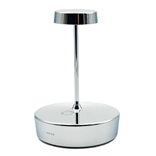 Zafferano, Swap Mini Lampa, Blank Kromfinish, Laddningsbar Sladdlös Bordslampa med Touchkontroller, Användbar som Inomhuslampa, Dimmer, 2700K, Höjd 14,8 CM