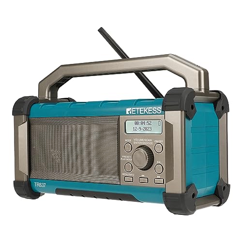 Retekess TR637 JOBSSITE Trådlös Bluetooth Radio, FM AM laddningsbar 5000mAh Battery Work Radio, bärbart handtag, dubbel droppisäker, arbetsplats eller trädgårdsradio
