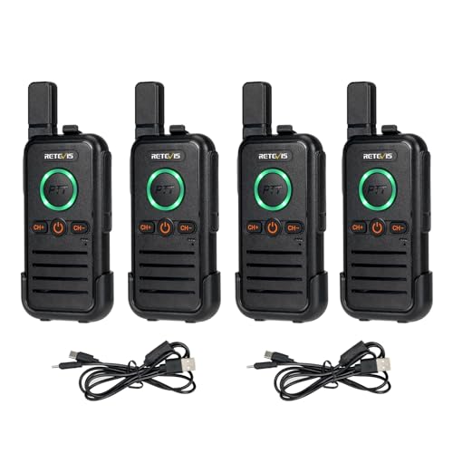 Retevis RB645 WALKIE TALKIE, PMR446 Dual PTT Radio, VOX, USB C laddningsbar 2 -vägs radio bärbar, Squelch, Mini Professional Walkie Talkies för vuxna, butik (4 st, svart)