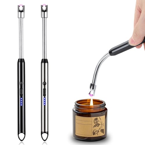 Set med 2 elektriska bågtändare, laddningsbara USB-tändare, plasma, långa tändare för ljus, grill, camping, eldstad (svart + silver)