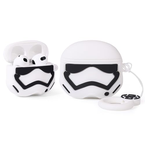 Fodral för Airpods 3:e generationen öronsnäckor, XMBYGY silikon Airpods 3 laddningsfodral skyddande fodral med söt tecknad hud design hörlurar, med nyckelring (vit soldat)