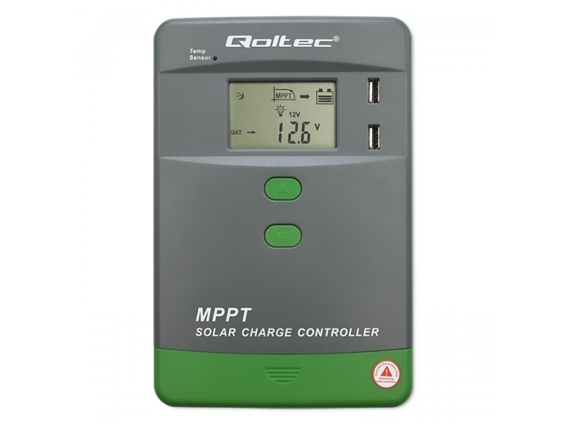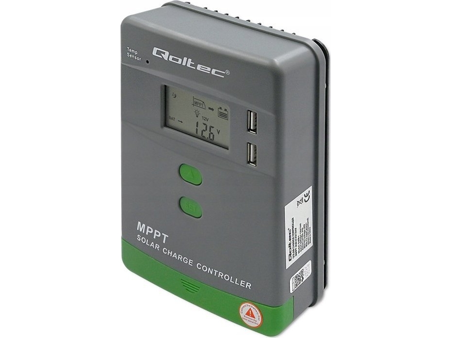 Qoltec Solar Mppt Laddningsregulator Med Temperatursensor 20A |12V / 24V | Lcd | 2 X Usb
