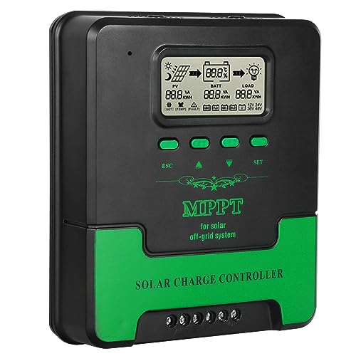 BuyWeek 60 A MPPT laddningsregulator 12 V/24 V/36 V/48 V bil solladdningsregulator med LCD-bakgrundsbelysning display max 180 VDC PV ingång för AGM/litium/blysyra/gelbatterier